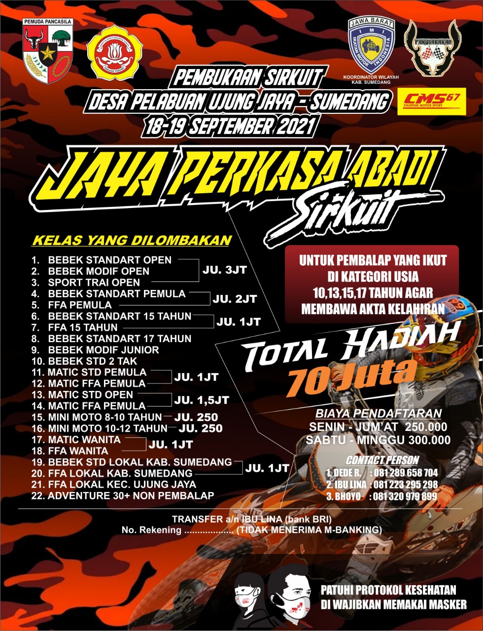 OtomotifZone.com – Sumedang. Jaya Perkasa Abadi Grasstrack 2021 akan digelar akhir pekan ini, tepatnya di Desa Pelabuan, Ujungjaya, Kabupaten Sumedang, Jawa Barat, (18-19/9). Ajang kali ini sekaligus pembukaan sirkuit dan akan memperebutkan total hadiah sebesar Rp. 70 juta.