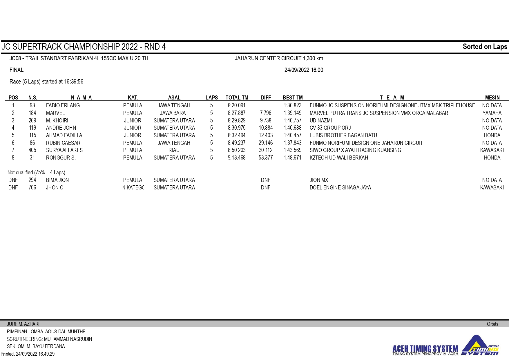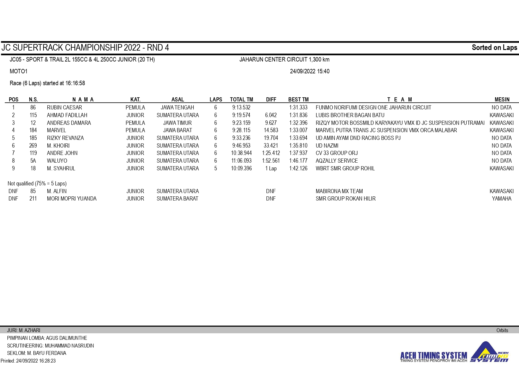 OtomotifZone.com – Sumatera Utara. Hari ini telah dilangsungkan babak qualifikasi balapan garuk tanah JC Supertrack Championship Seri 4 disirkuit permanen Jaharun Center Deli Serdang, Sumatera Utara. berikut hasil lengkapnya :