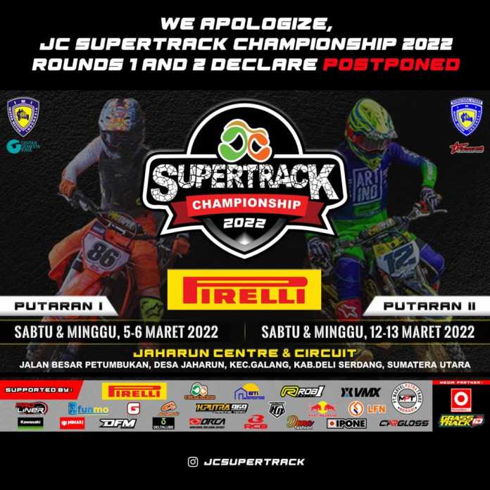 Dengan rasa berat hati, JC Supertrack Championship 2022 Putaran 1 dan 2 di nyatakan di tunda dalam waktu yang belum dapat di tentukan.