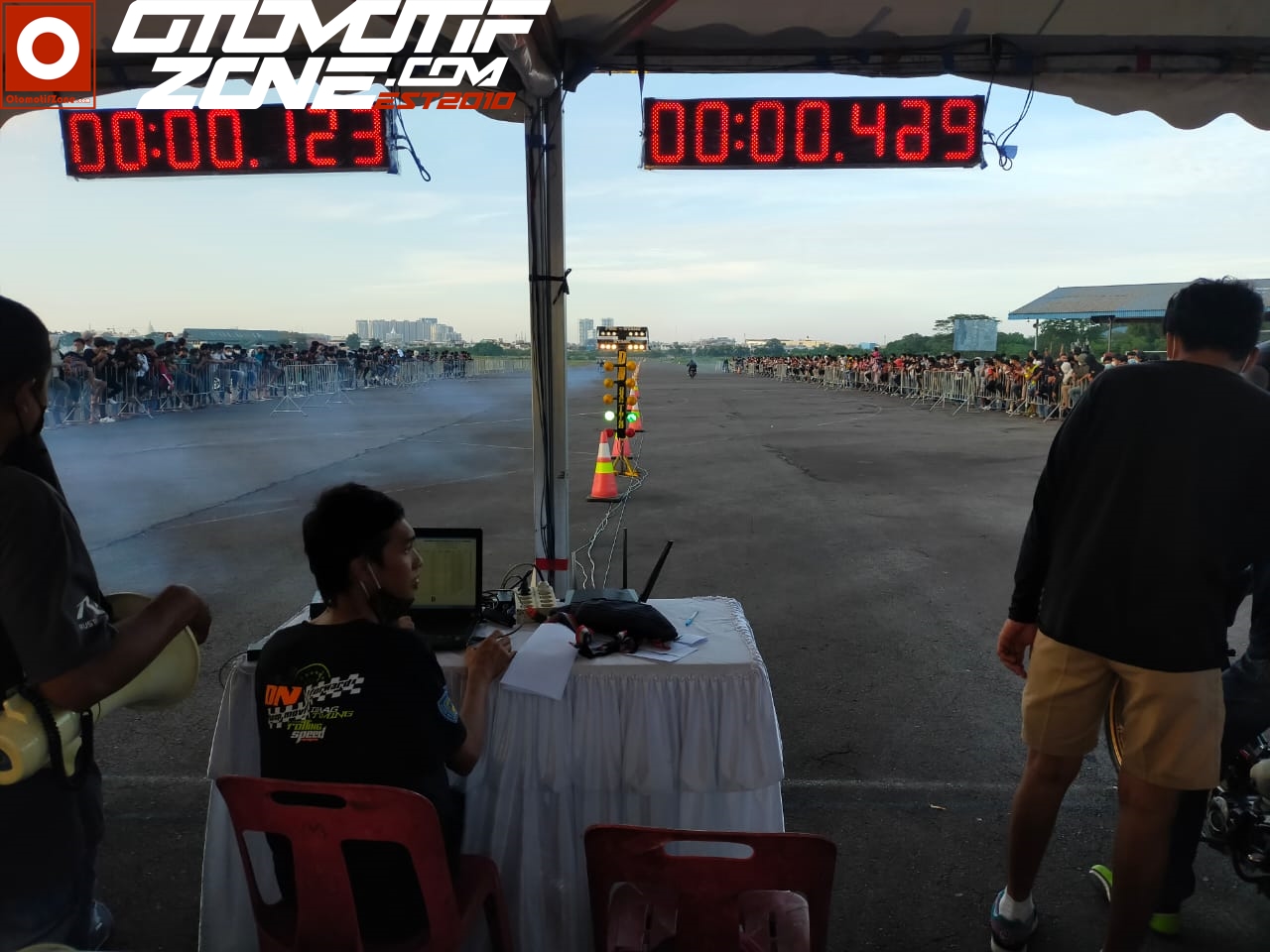 Otomotifzone.com – Tangerang Selatan. Untuk para pecandu balapan drag tentunya mendengar nama DN Timing sudah tidak asing lagi. DN Timing System merupakan sebuah tim yang tergabung untuk menjalankan sebuah balapan di suatu event. DN nama yang biasa dipanggil, bertugas untuk mengawali start dan memberikan hasil waktu bagi setiap pembalap, dan juga memberikan hasil keseluruhan.