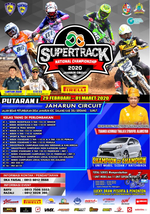 Seri 1 JC Supertrack National Championship 2020 di Jaharun Circuit, Jalan Besar Petumbukan, Jaharun, Galang, Deli Serdang, Sumut yang akan hadir dari Jawa ada juara Powertrack tahun lalu yang juga di support JS tak lain Lantian Juan bakal menjadi tamu kelas utama. Tak hanya Tian saja, ada M. Excel yang kabarnya akan berpindah ke balap grasstrack tahun ini juga ikut kesana. Akbar Taufan kabarnya juga ikut hadir lho..