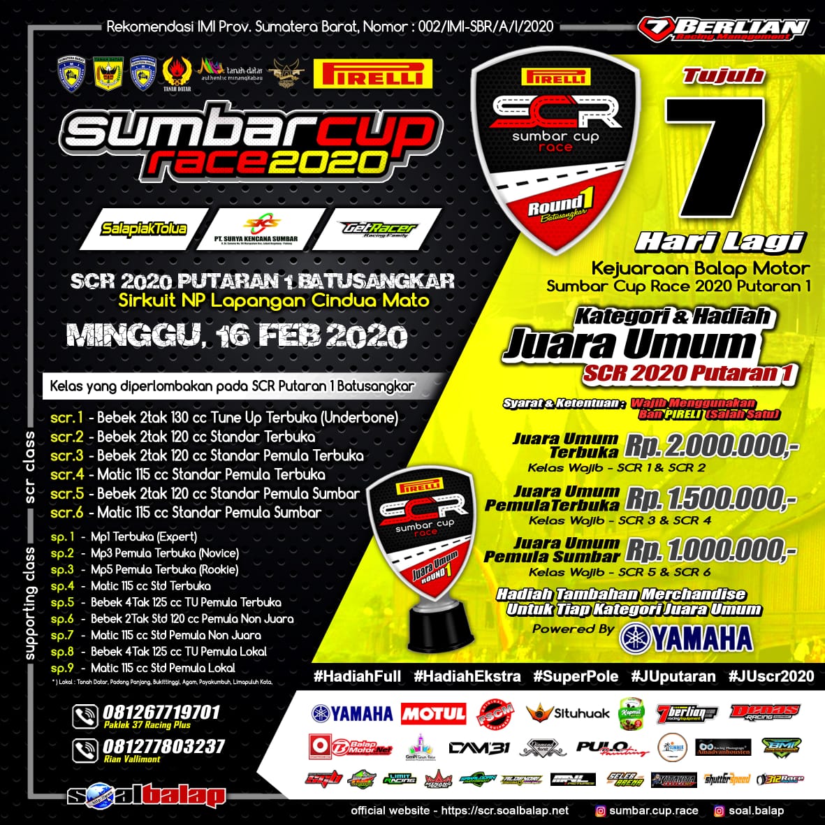 Untuk info lebih lengkap dalam event SCR ini bisa kontak langsung bagian pendaftaran di nomer 0812-6771-9701. Bagi sobat otozoners jangan sampai ketinggalan untuk bisa terus dapatkan update berita lengkapnya di otomotifzone.com.