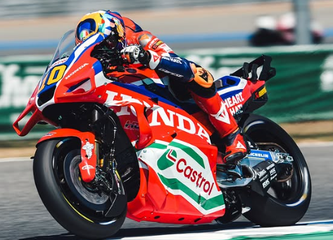 Luca Marini bersama tim Honda HRC Castrol, setelah pada tahun 2023 Luca Marini berhasil meraih pedium sprint pertamanya bersama tim lamanya.