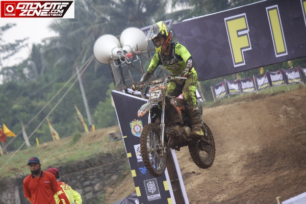 Benar, sirkuit Super Cleo ada di depan rumahnya persis dan hanya berbatasan jalan saja. Kejurnas Grasstrack tahun ini tidak ia sia-siakan karena sangat tepat bagi pembalap pemula yang benar-benar di usia seperti dirinya. Fabio Erlang dan team Abadi Junior Malabar BYS full senyum..