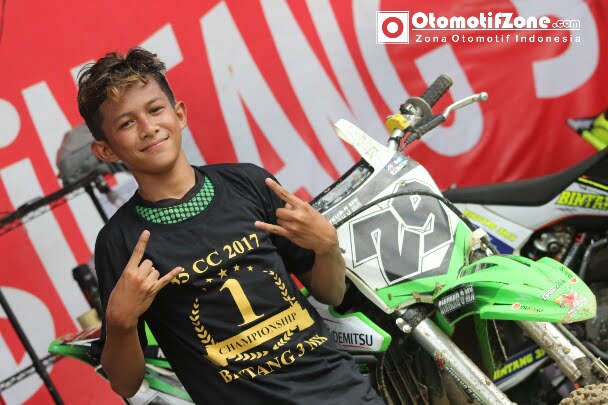 OtomotifZone.com-Jogja. Tak terlihat mau ambil aman atau yang penting finish, bocah asal Meninting, Mataram, Nusa Tenggara Barat ini tetap ingin tunjukkan permainan gila seperti sedia kala karena di sirkuit Tambakrejo, Sleman, Jogjakarta 1 Oktober 2017 ia di nobatkan sebagai juara nasional SE 85cc sebelum moto 2 di startkan.