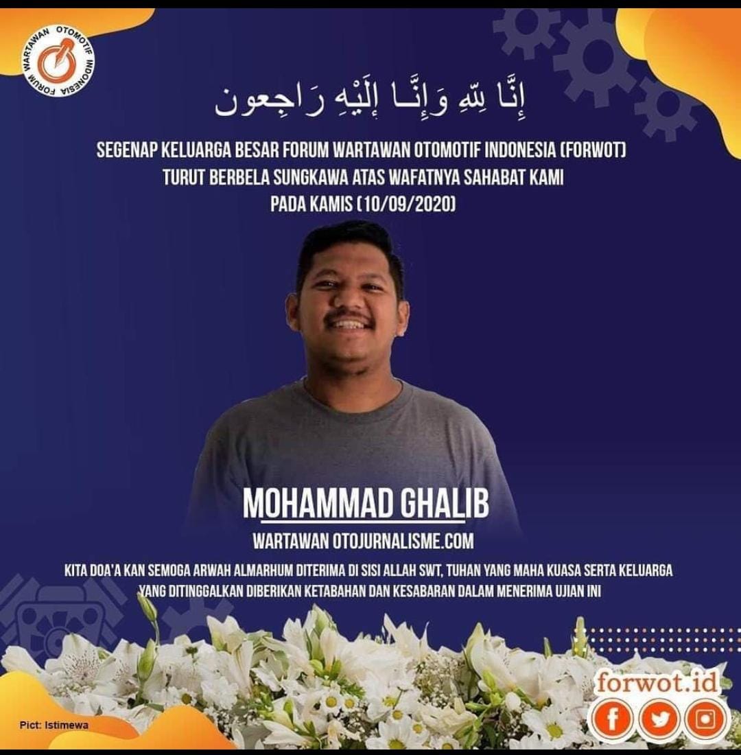Kami segenap redaksi OtomotifZone juga kehilangan salah satu kawab kita Mohammad Ghalib. Saat peliputan, penulis sendiri juga kerap melakukan peliputan bersama. Periang dan humoris menjadi karakter almarhum. Canda tawa bersama almarhum tidak bisa dilupakan.