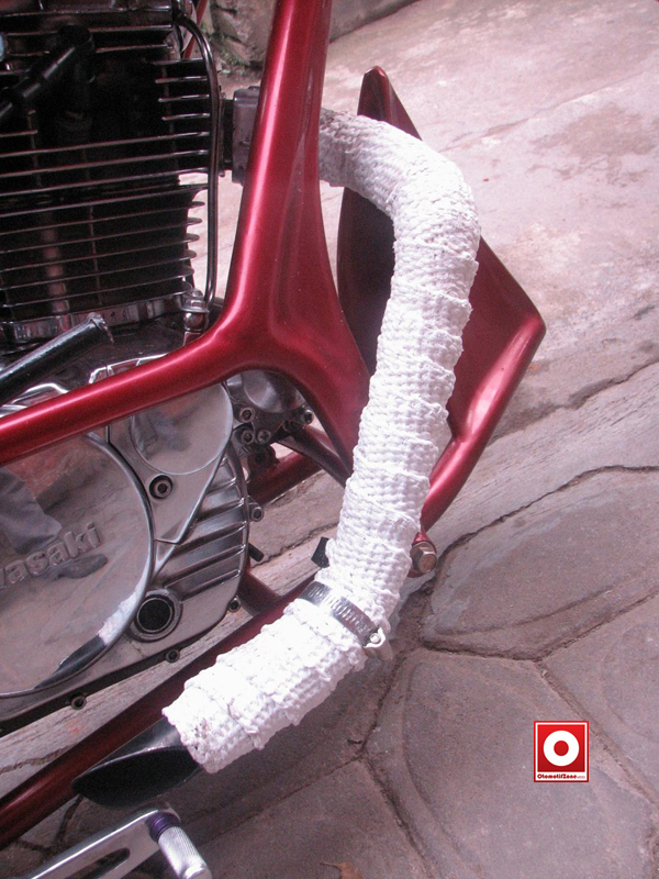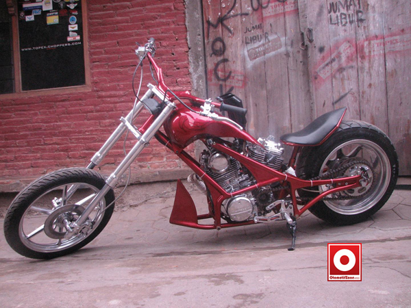 Tak ketinggalan knalpot juga memakai model double over flow. “Konsep yang diinginkan sang owner adalah konsep motor sport chopper yang lebih menantang jika diajak touring,”terang Topix juragan Topix Modification.