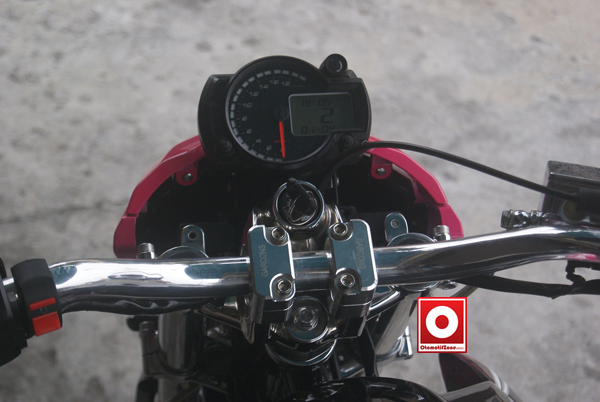 OtomotifZone.com-Semarang. Siapa sangka jika motor sport ini basicnya adalah motor trail alias Kawasaki KSR. Motor keluaran tahun 2015 ini menurut pemiliknya Sindu Andikara yang juga seorang tracker dari Team Rehobat ingin tampil beda. Berbekal motor trail KSR ini Sindu ingin memiliki motor yang berbeda dengan lainnya. “Perbedaan itu wajar dan aku ingin mendapatkan itu semua, karena bentuk motor KSR tampilannya sama dengan motor trail lainnya Cuma berbeda di ban, dari hal tersebut aku ingin mmebuat konsep yang berbeda,” ungkap Sindu Andikara.
