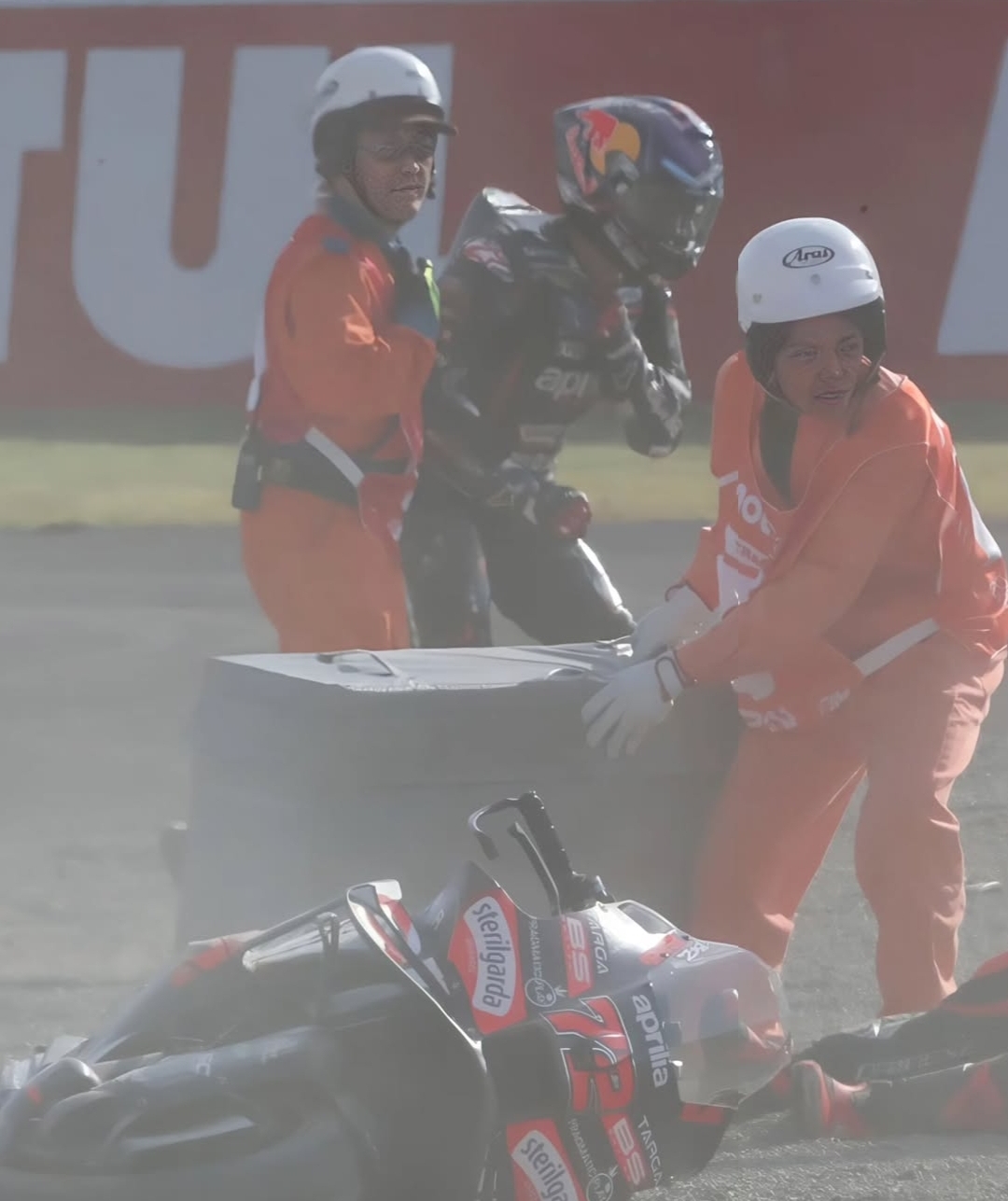 Jorge Martin yang juga langsung dilarikan ke ruang medis dan dilakukan pemeriksaan lebih lanjut didapati mengalami patah tulanv selangka kanan, dan saat ini Martin masih mendapatkan perawatan intensif dari pihak dokter MotoGP.
