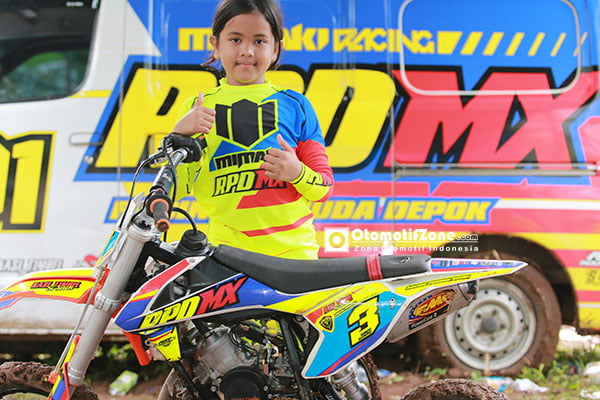 Otomotifzone.com – Pandeglang. Frideswide Aurrazzanda atau biasa di panggil dengan nama sapaan Zanda ia merupakan anak dari pasangan Slamet Budiono dan Yuleha, gadis yang baru berumur delapan tahun ini adalah seorang crosser wanita dikelas SE 50cc dan tahun ini adalah debut pertamanya mengikuti balap Motocross, sebagai pendatang baru tentunya ia masih butuh waktu untuk bisa mengejar rival-rivalnya yang notabene adalah laki laki.