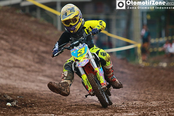 ” Seneng bisa balapan Motocross, karena balapanya seru, teman – teman disini juga lebih asyik ketimbang teman – teman di sekolah, kalo rival paling berat menurut aku Atik CB dan sampai saat ini aku masih berusaha agar bisa mengejarnya mangkanya aku pengen rajin latihan dan balapanya lebih sering lagi ” Tutur Zanda Pembalap Tim RPD MX Mimaki ART Industri