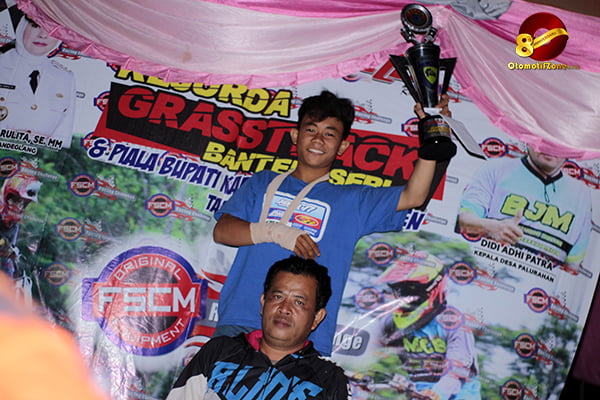 “Seri 3 saya menambah 25 point dan saat ini saya punya total point 50 mas, Kejurda Grasstrack Banten masih tersisa 2 seri lagi mas saya berharap di 2 seri yang aka datang saya bisa mengejar ketertinggalan point saya karna saat ini point saya 50 saya berada di posisi 4 besar dan pembalap yang mempunyai point tinggi banyak yang tidak balap jadi masih banyaj harapan saya mas semoga saya bisa mewujudkan impian saya dengan menargetkan jadi juara umum di kelas pemula Banten, semoga bisa terlaksana” Tutup Jepri Bule.
