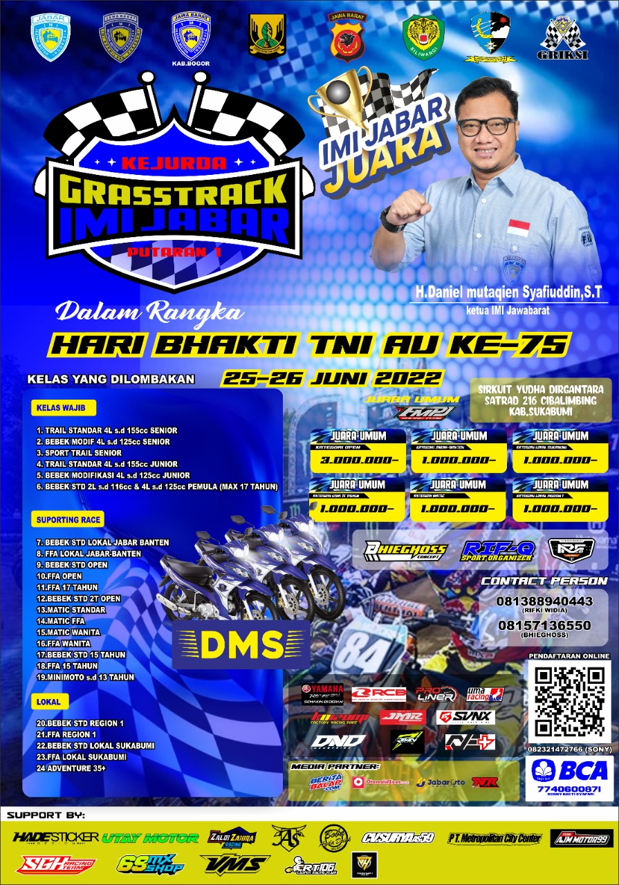 OtomotifZone.com – Bandung. Hello para pecinta garuk tanah terutama kawasan Jawa Barat, taukah anda akhir pekan ini ada Kejurda Grasstrack IMI Jawa Barat. Ya gelaran ini akan berlangsung (25-26/6/22) di Sirkuit Yudha Dirgantara Satrad 216 Cibalimbing, Kab. Sukabumi, Jawa Barat. Pada gelaran ini sekaligus merayakan Hari Bhakti TNI AU ke 75. Dijamin gelaran ini akan meriah dan panas akan persaingan.