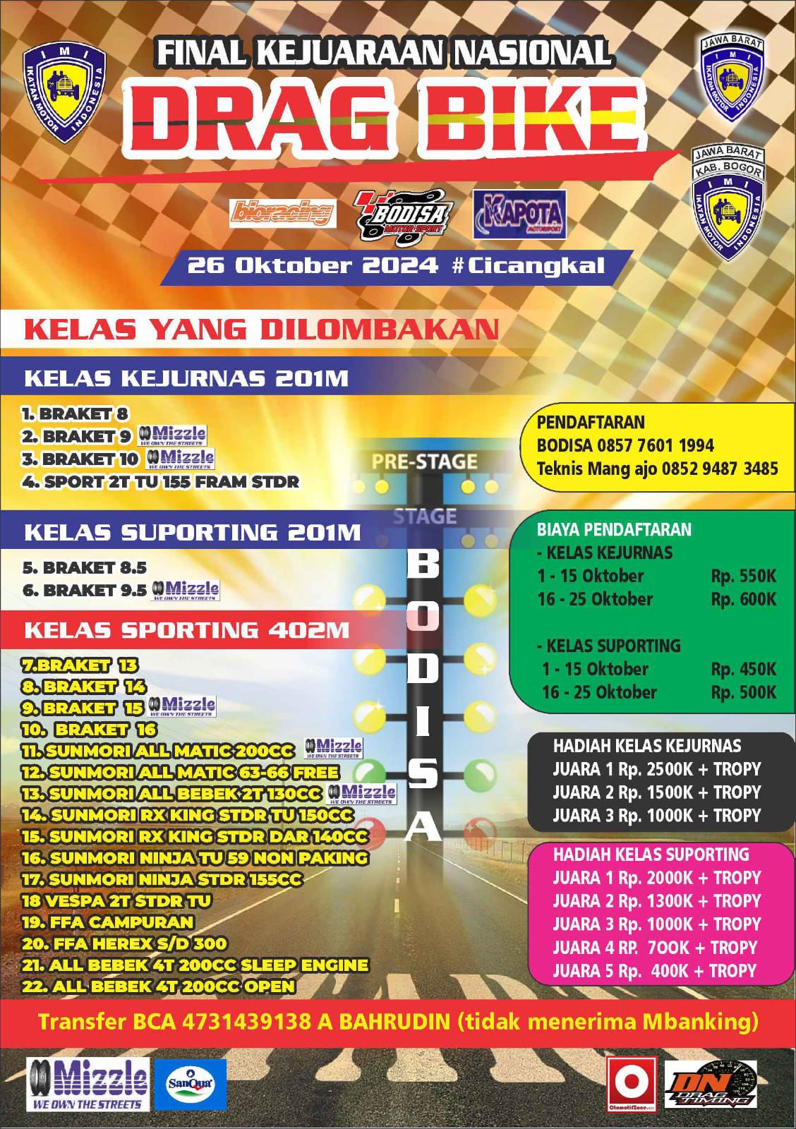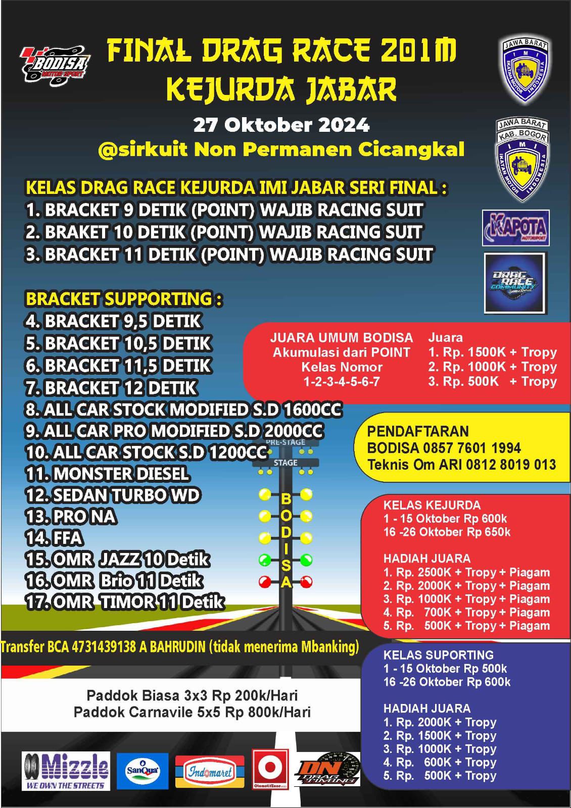 2 title balapan yang berbeda, mewarnai Landasan Udara milik Bravo 90. Yakni Final Kejuaraan Nasional Drag Bike, yang mementaskan 201 meter serta balap 402 meter sebagai Supporting. Lalu ada Final Drag Race 201 Meter Kejuaraan Daerah Jawa Barat.