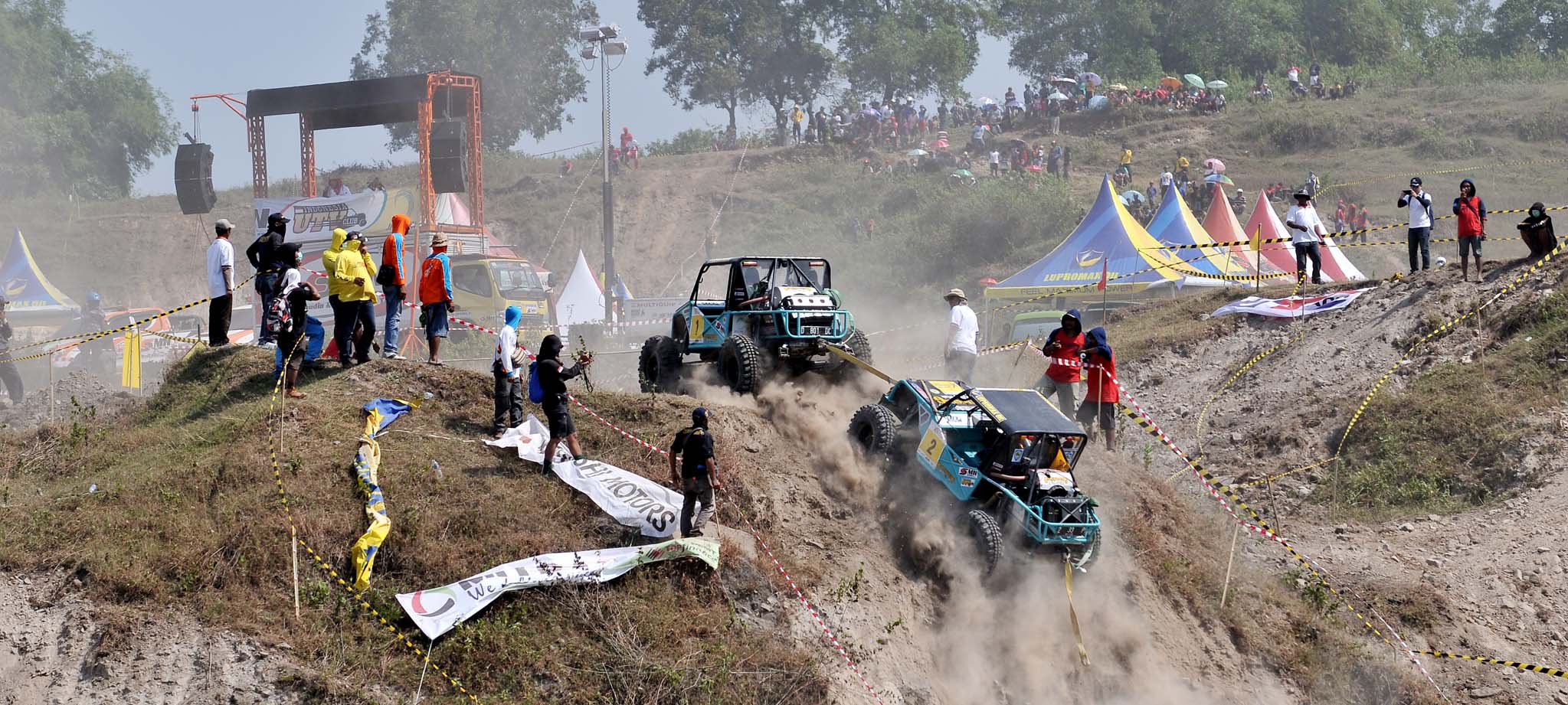 Sebanyak 69 offroader nasional dan 23 tim meramaikan hajatan akbar pekan ini. Suguhan menarik pada lintasan ekstrim setinggi 3-4 meter dengan tipikal tanah pasir berbatu dan berdebu tak membuat peserta ragu melahap 5 Special Stage (SS) yang harus diselesaikan pada leg pertama hari Sabtu (14/6).