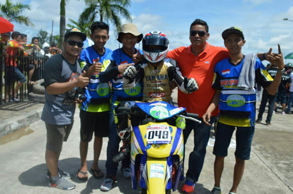 Nah, kategori rider seeded (unggulan) ada beberapa nama perlu dicatat. Robby Harmoko dari Balikpapan yang berada di bawah panji D2 Jaya – QQ Motorsport – IRC MBS menguasai podium juara. Lalu ada A. Hamid asal Kutai Kartanegara dari tim 99 Jari Jempol yang menjadi fighter terdekat Robby.