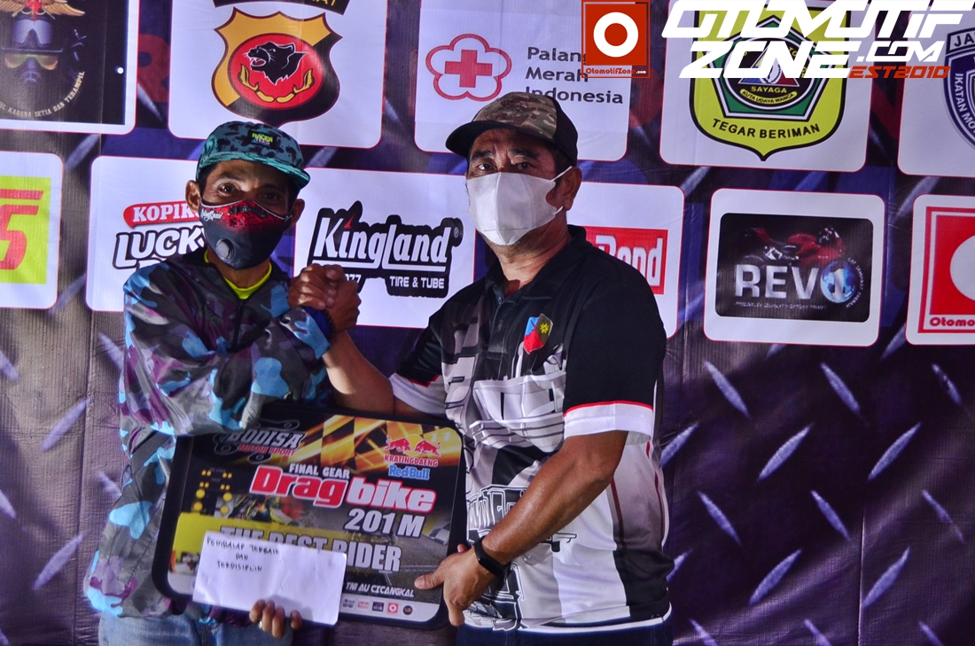 Hari itu, pembalap yang dinobatkan sebagai gelar Best Rider, ialah pembalap senior yang sudah malang melintang dalam dunia otomotif khususnya drag bike Indonesia. Serta memiliki segudang ilmu dan pengalaman dalam bidang balap lurus, Ayip Rosidi. Pembalap yang kiranya memasuki usia 40an itu masih eksis dalam sengitya pertarungan karapan drag bike 201 meter.