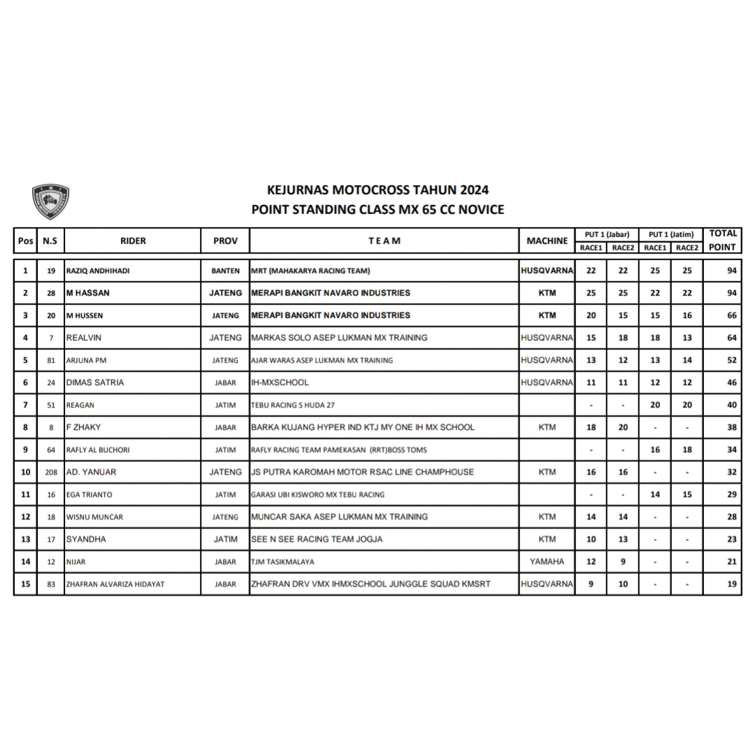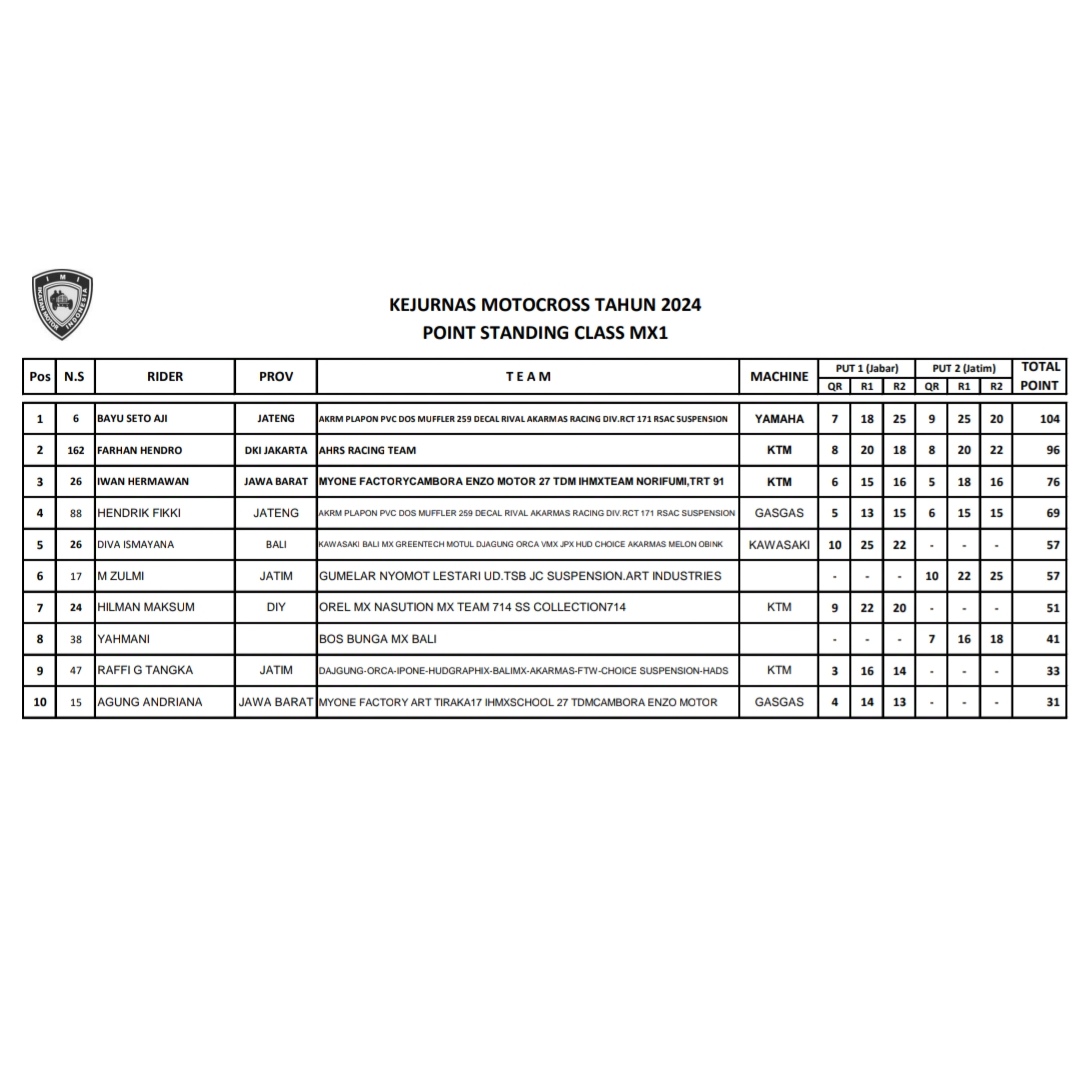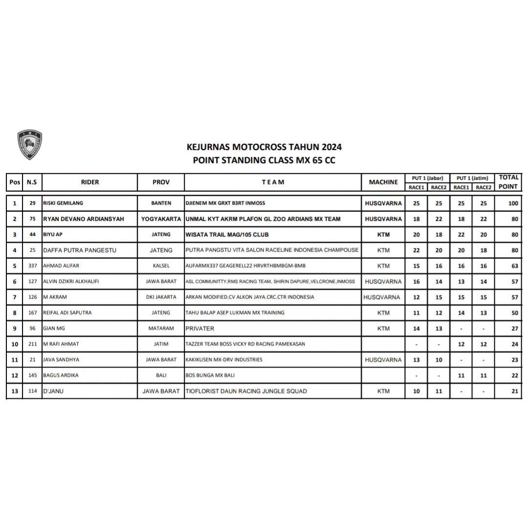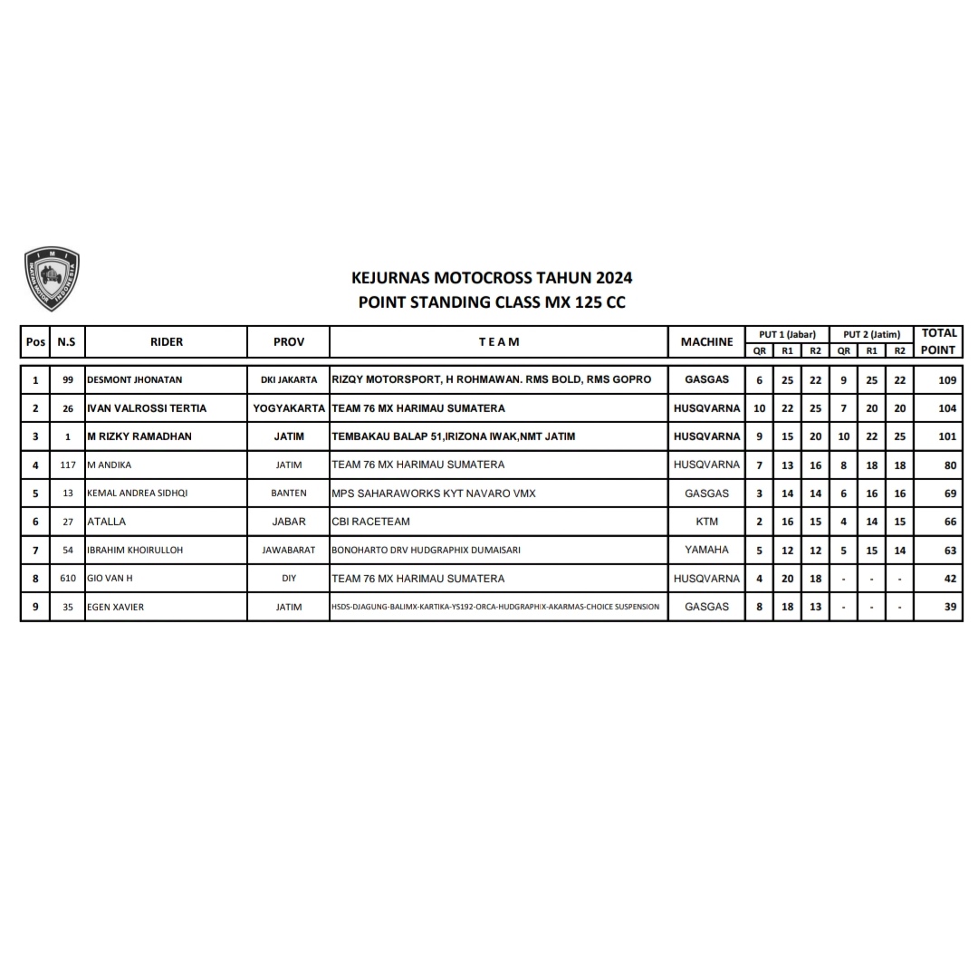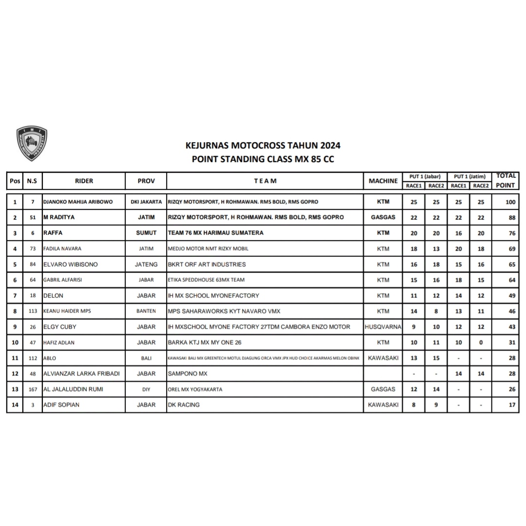 Bisa di simak klasemen sementara dibawah ini dari kelas 50cc sampai MX1.