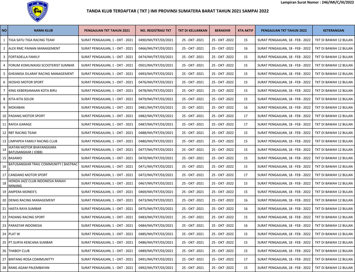 OtomotifZone.com – Padang. Ikatan Motor Indonesia Provinsi Sumatera Barat gagal jalankan Musprov yang berlangsung (26/3/22) . Ini membuat para anggota club murka. Dan hasil keputusan para sebagian klub, Defri sudah bukan ketua IMI Sumatera Barat alias sudah berakhir. Ini karena batas tenggang masa jabatan dianggap sudah selesai dan harus ada pemilihan ulang. Legalitas sebagai ketua dianggap sudah berakhir pertanggal (27/3/22).