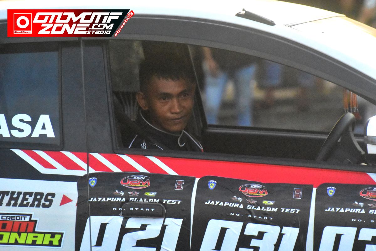 Penampilan anggota POLDA Papua ini cukup percaya diri sejak awal kelas yang di ikuti. sejak lampu timing terpadamkan. Tanpa ampun Suardi meluncur dengan mulus melewati rintangan zigzag. Namun kendala mulai terlihat ketika stir dibanting ke kanan beberapa cone merah justru kendaraannya tidak memutar 180 derajat. Alhasil pembalap JAC (Jayapura Auto Club) ini harus menerima pinalti 120 detik.