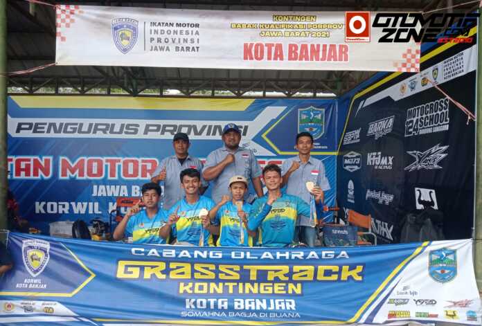 OtomotifZone.com – Banjar. Kontingen Cabang Olahraga Balap Motor Grasstrack Kota Banjar berhasil meraih tiga medali emas di ajang Babak Kualifikasi Porprov XIV 2021 Jawa Barat di sirkuit Gelora Banjar Patroman, Kota Banjar, (1/12) kemarin. Dua medali diperoleh dari kategori kelas Trail 4-Tak Usia 17 Tahun ke Atas Beregu dan Trail 4-Tak Usia 17 Tahun Perorangan.