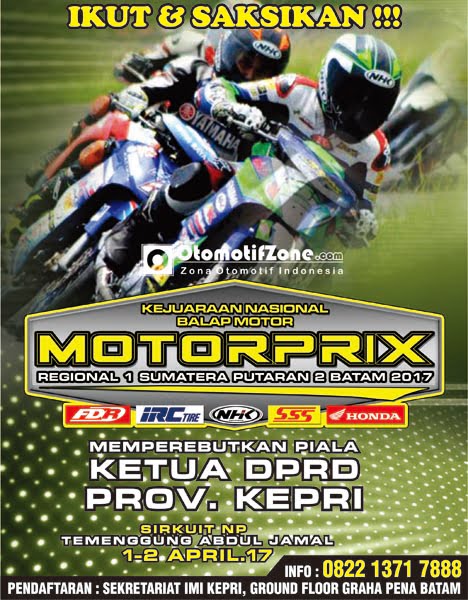 OtomotifZone.com-Batam. Setelah sukses melalu tahap awal gelaran kejurnas balap motor nasional MotorPrix region 1 Sumatera 12 Maret lalu di Curup Bengkulu, Pengprov IMI Kepri akan menggelar event serupa seri 2 akan menggelar Sabtu-Minggu ini 1-2 April 2017 di kota Batam.