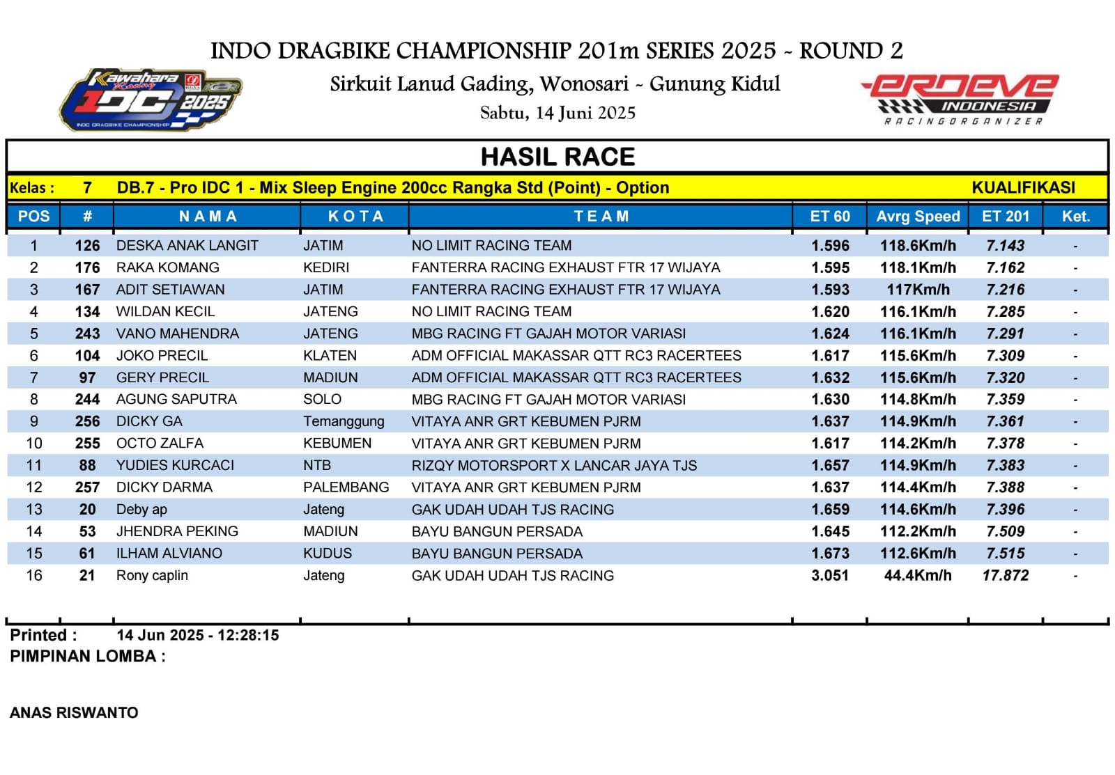 , sekaligus mengungguli rival-rival berat yang juga tampil konsisten sepanjang sesi. Dengan torehan tersebut, Deska dan tim No Limit Racing Team menunjukkan bahwa mereka datang ke seri kedua dengan persiapan matang.