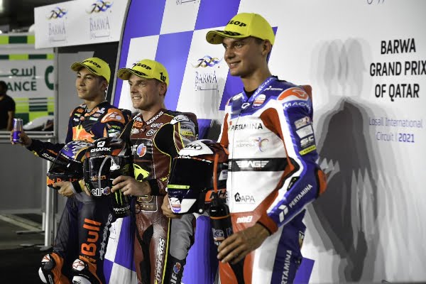 OtomotifZone.com-Qatar. Masuk kelas Moto2 di kualifikasi MotoGP sirkuit Losail, Qatar 27 Maret 2021 atau result semalam. Sam Lowes dari team Elf Marc VDS memang berhasil menjadi rider tercepat dengan catatan 1’58.726. Di susul Raul Fernandez dari team Red Bull KTM Ajo posisi dua dan yang mengejutkan ada Bo Bendsneyder yang membawa team Pertamina Mandalika SAG di posisi ketiga.
