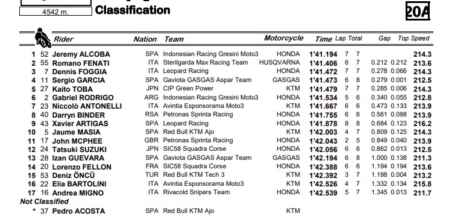 Berikut Hasil kualifikasi Moto3 yang baru saja selesai sebelum kualifikasi selanjutnya.
