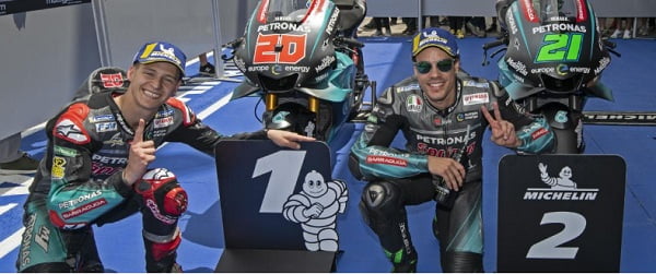 OtomotifZone.com-Spanyol. Luar biasa pencapaian team yang baru nongol tahun ini. Petronas SRT Yamaha ngamuk rebut baris terdepan di kualifikasi Motogp Jerez 4. Lewat dua pembalapnya Fabio Quartararo dan Franky Morbideli berhasil duduk di posisi 1-2.