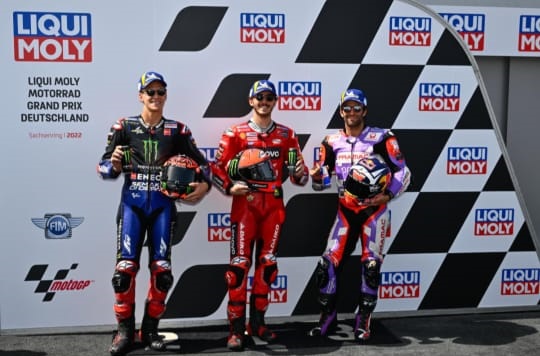 OtomotifZone.com-Jerman. Kualifikasi seri sepuluh MotoGP di Sachsenring, Jerman 18 Juni 2022 mengantar Francesco Bagnaia dan team Lenovo Ducati sebagai team tercepat bersama pembalapnya jelang balap besok. Pembalap Italia ini fantastis main aman usai mencetak waktu tercepat pada menit pertengahan.
