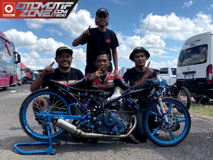 OtomotifZone.com – Yogyakarta. Kesempatan baik datang & berhasil diraih oleh pembalap bernomor keramat #05, babak final sebagai penentu hasil akhir Fu 200cc Sandora karya CMT Markipat tembus di angka 07.021 detik & berhak ke podium terhormat.