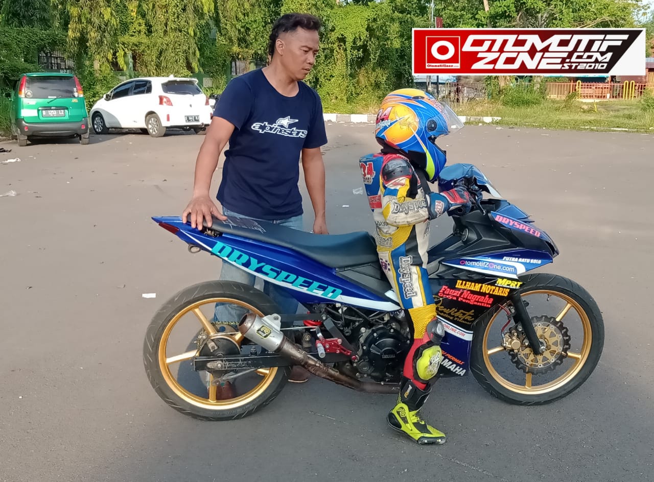 OtomotifZone.com – Indramayu. Lama vakum dan gantung wearpack di ajang balapan motor Tanah Air, Andri Dry kini nampak mulai serius mewariskan bakat balapnya pada sang anak, Kawahara Putra Viandry. Hal itu terlihat saat penulis sambangi area Sport Centre Indramayu, Jawa Barat, yang menjadi sarana sirkuit sekaligus untuk menyimak langsung potensi muda di kota Mangga ini dalam berlatih balap termasuk putra kesayangan dari wong Dermayu Andri Dari yang mantan pembalap Nasional era tahun 2000-an silam.
