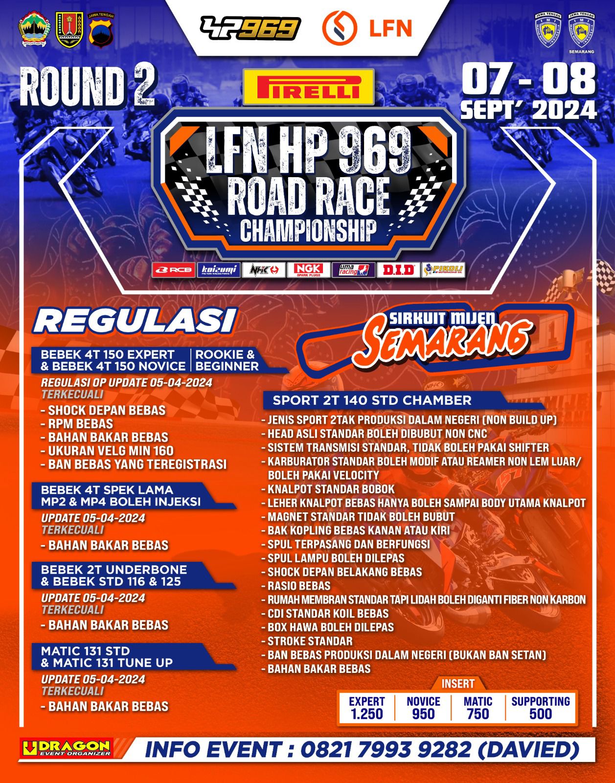 OtomotifZone.com – Semarang. Perhatian perhatian!!! Ada kelas baru di ajang LFN HP969 Road Race Championship yang akan digelar (7-8/9/24) di Sirkuit Mijen Semarang, Jawa Tengah. Dragon Event Organizer sengaja membuka kelas baru ini.