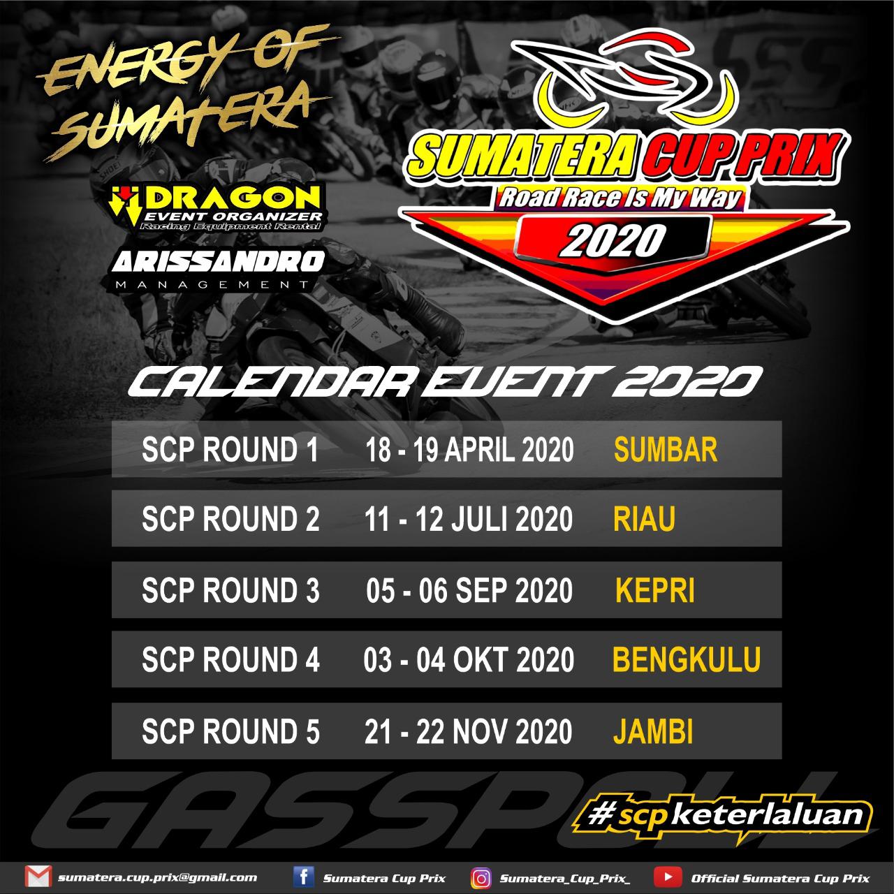 Lima putaran yang akan dihelat, putaran pertama akan dimulai di Provinsi Sumatera Barat. Yang kita tau ada histori bagus di Sumatera Barat. Terutama pada Sumatera Cup Prix 2019. Putaran 2020 di Sumatera Barat ini akan dihelat pada bulan April.