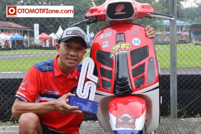 Otomotifzone.com — SENTUL. Pemilik posisi puncak klasemen sementara, dari kelas 4T 220cc TU Open gelaran balap Vespa 2025. Pebalap asal Jakarta, M. Nurgianto kembali dengan aksinya.