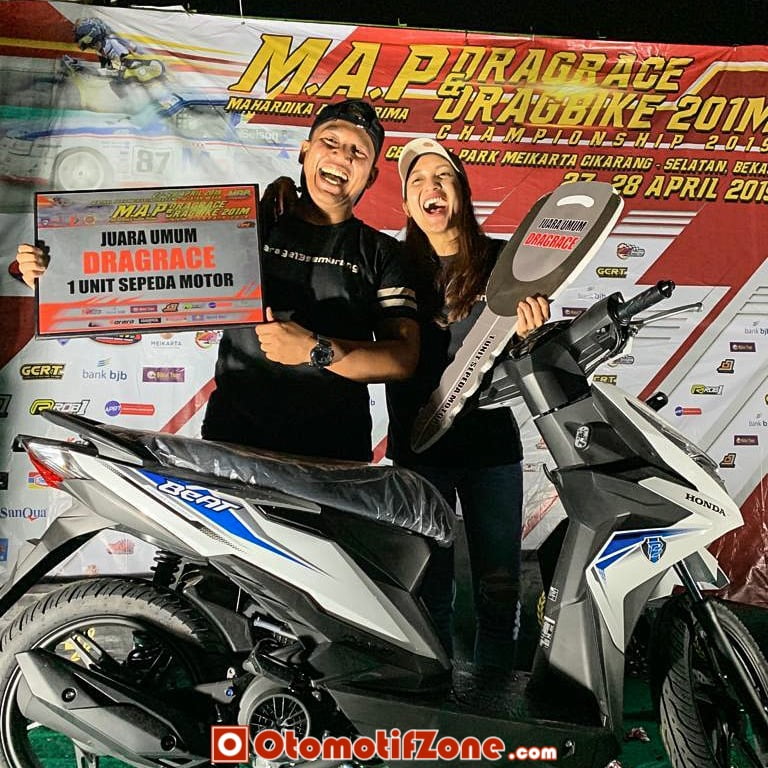 OtomotifZone.com – Cikarang. Pada gelaran event MAP Drag Race & Drag Bike Championship 2019 yang berlangsung di sirkuit Central Park Meikarta Cikarang, Sabtu (27/4). M. Wasrik berhasil meraih juara umum setelah dirinya sukes mengumpulkan point tertinggi dengan total point 72.