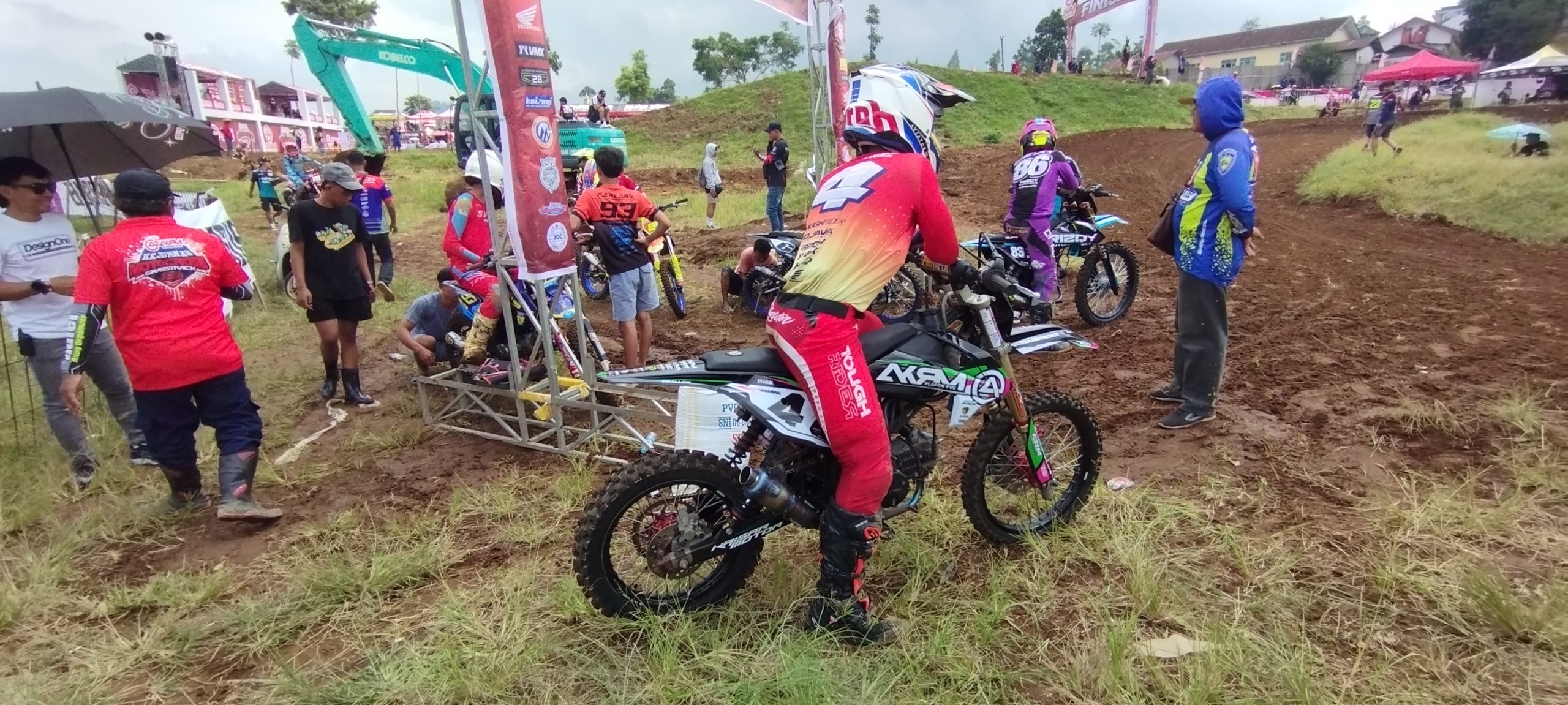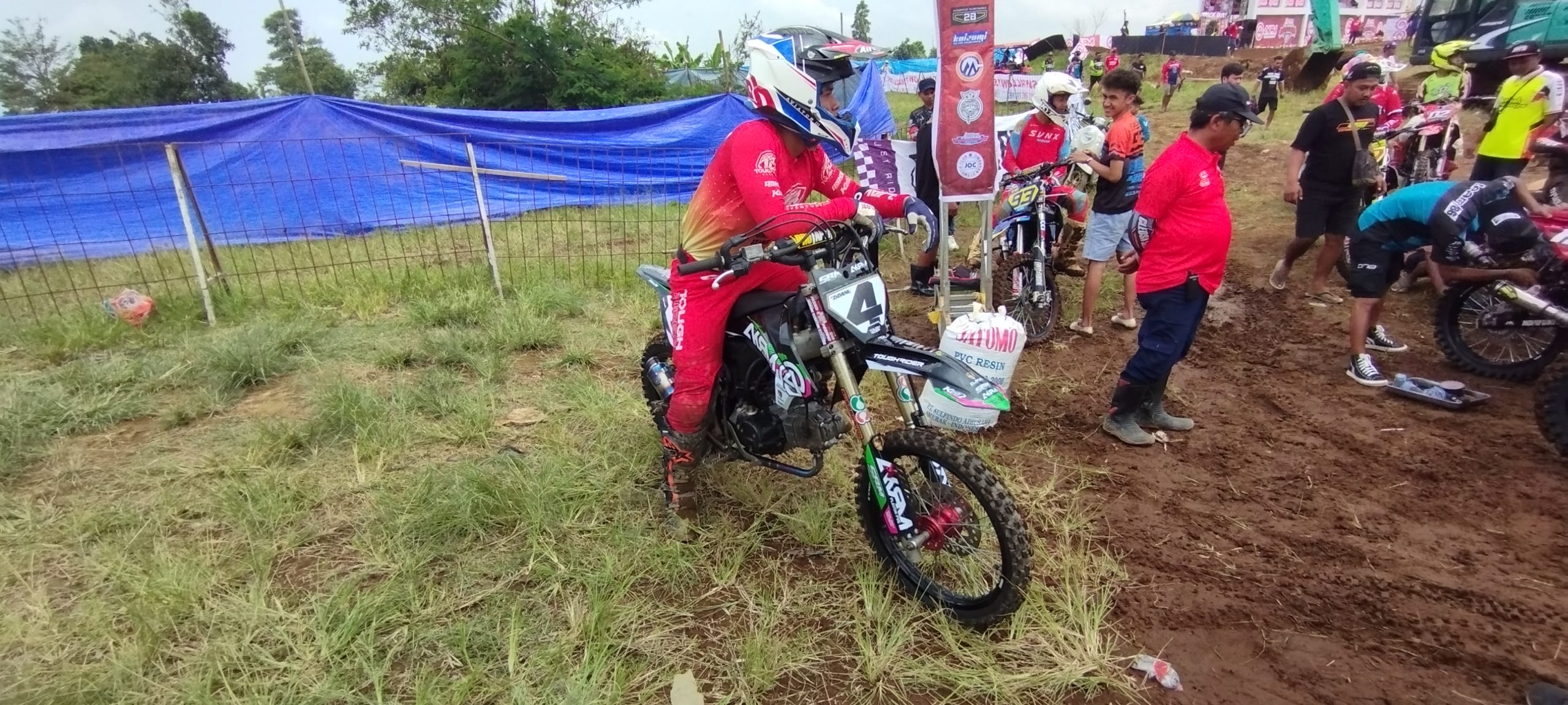 Sedikit mengejutkan pastinya dikarenan bukan livery yang menampangkan BSM313, tetapi malah menampilkan dengan gamblang logo AKRM Plafon PVC sebagai sponsornya, tak hanya itu saja, AKRM Plavon PVC juga nyempil pada nama tim balapnya pada seri 1 kejurnas Motocross Grasstrack 2025 kali ini.