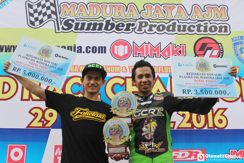 “Gabungan poin dari Kelas Matic 115cc TU Open, Matic 130cc TU Open, Matic 150cc TU Open, FFA, dan Bebek 2Tak 125cc STD Open mendapatkan uang pembinaan sebesar 3,5 juta. Sedangkan Pemula di Matic 115cc TU Pemula, Matic 130cc (MP7) Pemula, Matic 150cc TU Pemula, MP4, dan Bebek 2Tak 125cc STD Pemula diganjar uang pembinaan 5 juta,” ujar Indah Yudia, Ketua Penyelenggara.