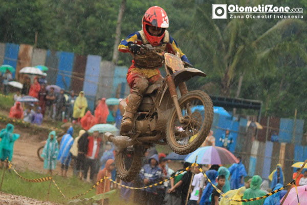 OtomotifZone.com-Magelang. Masih tentang balap kemarin di event regional open grasstrack Magelang di sirkuit Sebumen, Magelang (6/3). Pembalap bernomer start 108 team JS Putra Klaten, Prima Laksana atau akrab dipanggil Mamo bermain sangat keras sekali di kelas open. Walau hanya mengandalkan Yamaha Fizr andalannya di kelas bebek modif pemula namun dia bisa di depan Wibowo Gosong yang bisa di katakan pembalap Senior tahun ini.
