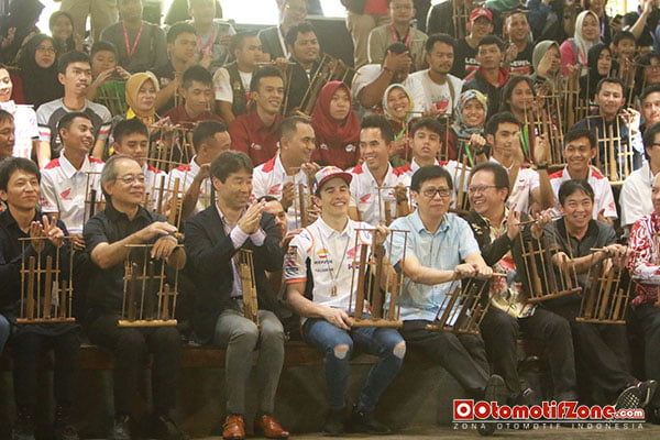 OtomotifZone.com – Bandung. Salah satu warisan budaya dan kesenian khas Jawa Barat, yakni angklung saat ini sudah semakin terkenal dan bahkan telah mendunia menyusul saat dimainkannya alat musik dari budaya Sunda ini oleh juara dunia MotoGP, Marc Marquez bersama dengan sekitar 200 komunitas motor Honda di Saung Udjo, Bandung, Jabar, Minggu (10/2/2019).
