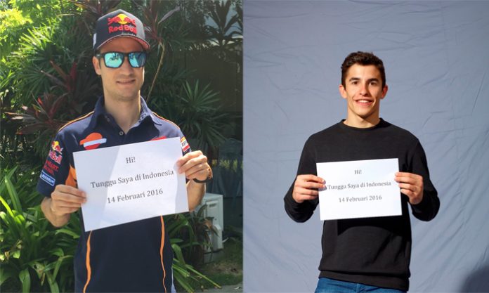 Pembalap asal Spanyol ini bakal hadir di Sirkuit Sentul, Jawa Barat, Minggu, 14 Februari 2016, Marc Marquez dan Dani Pedrosa akan menghabiskan waktu bersama para penggemarnya di Indonesia. Selama sehari penuh melalui sesi Meet and Greet, para pecinta sepeda motor Honda di Tanah Air dapat berinteraksi langsung dengan dua pebalap papan atas dunia ini.