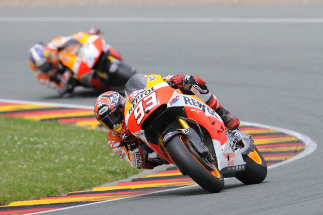 Perjuangan Marc tidaklah mudah karena sirkuit sachsenring cukup dibilang bersahabat bagi Dani Pedrosa terbukti Dani Pedrosa sampai menjelang akhir kualifikasi masih unggul 0,2 detik dari catatan waktu Marquez. Namun, Marquez masih mengambil satu putaran terakhirnya dengan waktu 1 menit 20,336 detik.