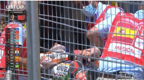 Dokter Xavier Mir tak lain dokter khusus yang biasa menangani pembalap mengatakan ada gejala lain untuk kasus Marc Marquez. “Dia mengalami dampak langsung dari ban ke lengan yang mengakibatkan patah tulang lengan di batang himerus. Walau tidak fatal semua tapi ada kemungkinan kelumpuhan saraf radialnya, meski kami tidak bisa memastikan,” kata dokter.