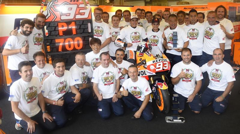 “Perlombaan berjalan sangat baik. Performa Jorge meningkat pesat saat balapan. Kami menggunakan strategi menyerang di akhir, ketika tinggal menyisakan 3 lap saya pikir itu adalah waktu yang tepat untuk mengambil kemenangan di sirkuit ini. Saya juga sangat bangga bisa mengambil kemenangan 700 Honda. Ini adalah hari yang istimewa bagi saya dan tim,” kata Marquez.