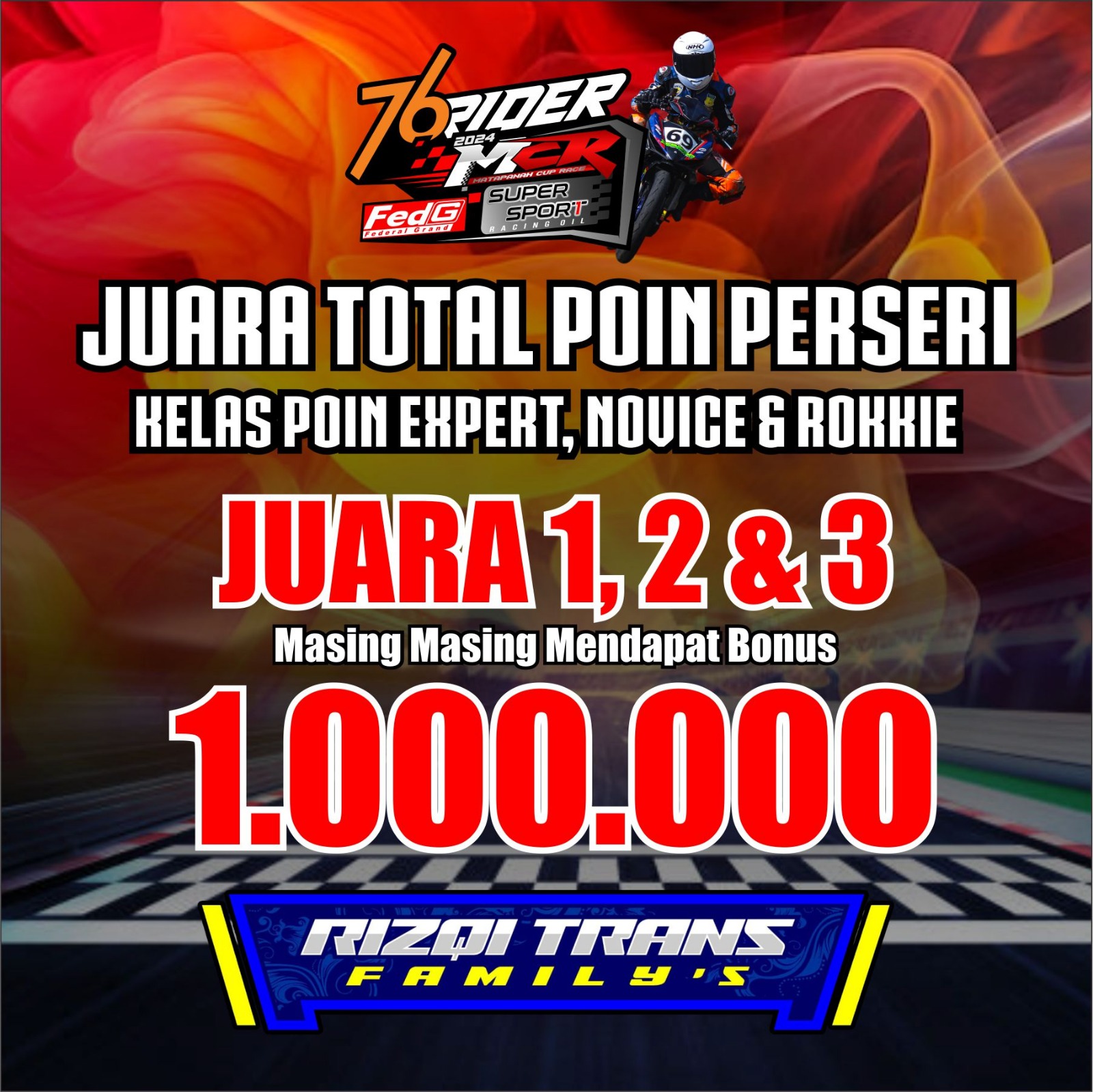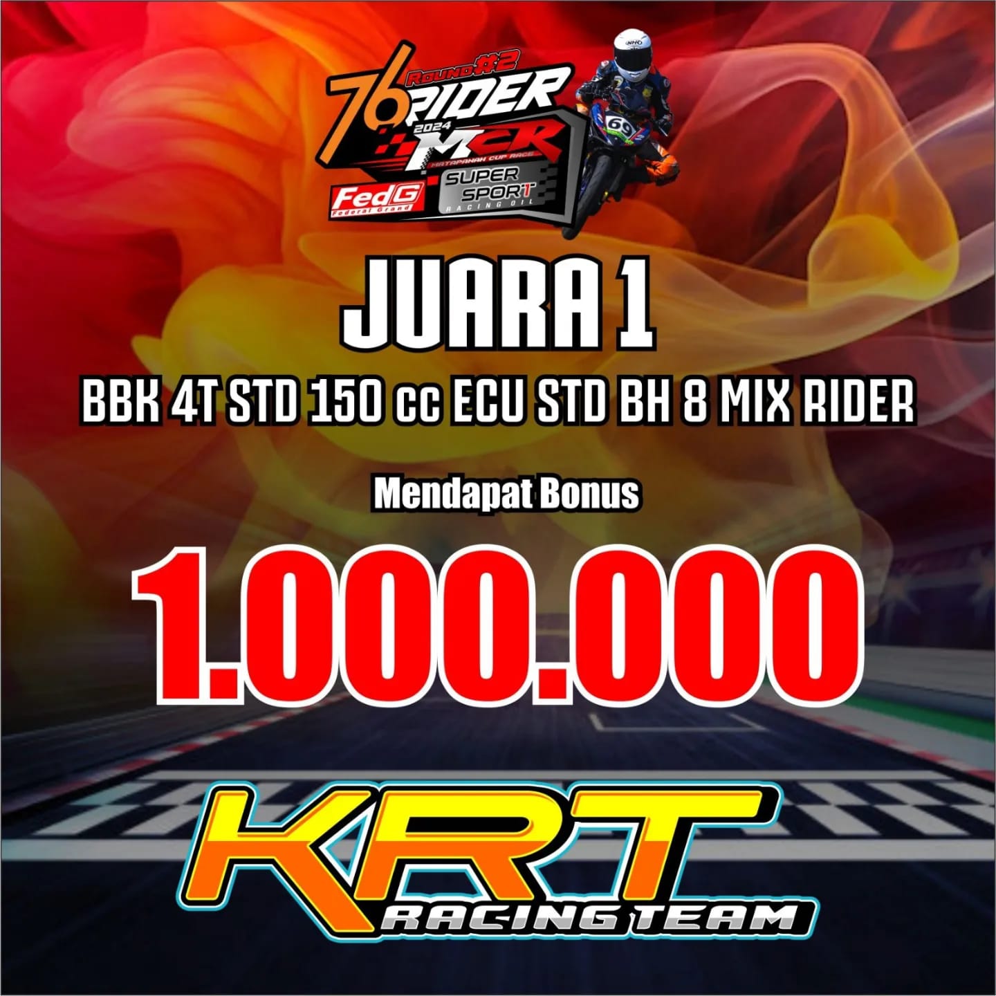 “Terimakasih untuk Rizqi Trans Family dan juga KRT racing tim, yang sudah memberikan tambahan hadiah untuk para peserta di putaran 2 MCR ini. Harapan kamj juga dengan adanya beberapa tambahan hadiah, bisa lebih memotivasi para pembalap dan tim agar mampu tampil maksimal,” Pungkas Pria Asal Blitar Jatim Ini.