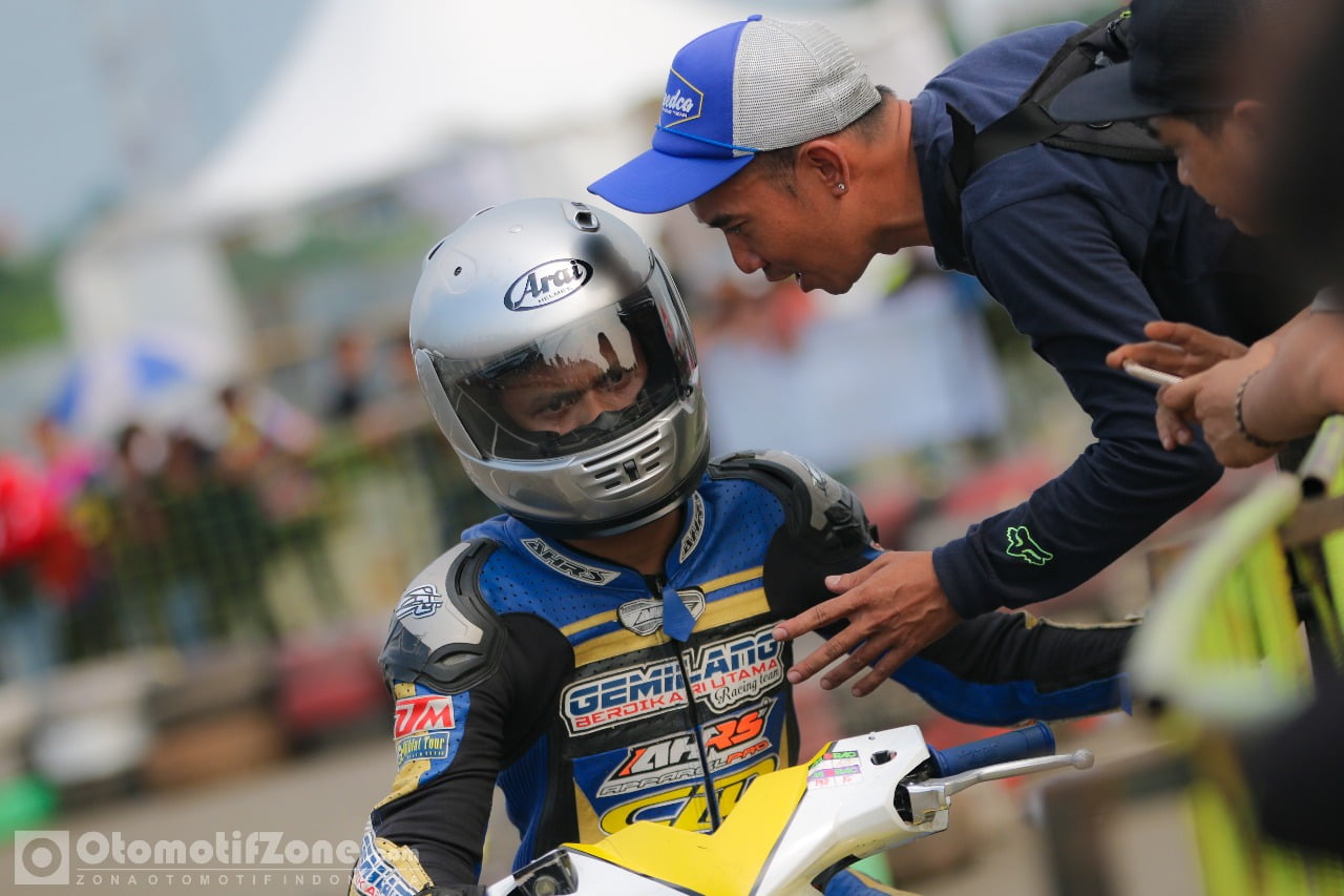 OtomotifZone.com-Cikarang. Pembalap muda asal Kota Purwakarta yang sempat menghilang beberapa waktu lalu kini kembali muncul ke lintasan bersama Dewasena Racing Team Karawang langsung mendominasi Kualifikasi pada beberapa kelas Matic Open pada event Meikarta BNI Pikoli Open Road Race 2019 (9/03).