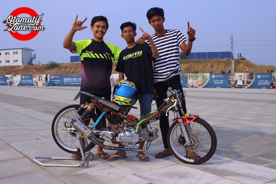 “ Motornya saya rasakan dari bawah kuat mas. Terus motor nyaman mas karena habis ganti rangka. Hanya ada kendala sedikit mas di putaran atas mas. Atasnya mas terlalu habis gitu mas. Kaya minta turun gir mas. Tapi alhamdulillah motor bisa bersaing mas dan bisa juara pertama,” jelas M. Dhiba langsung kepada OtomotifZone.com