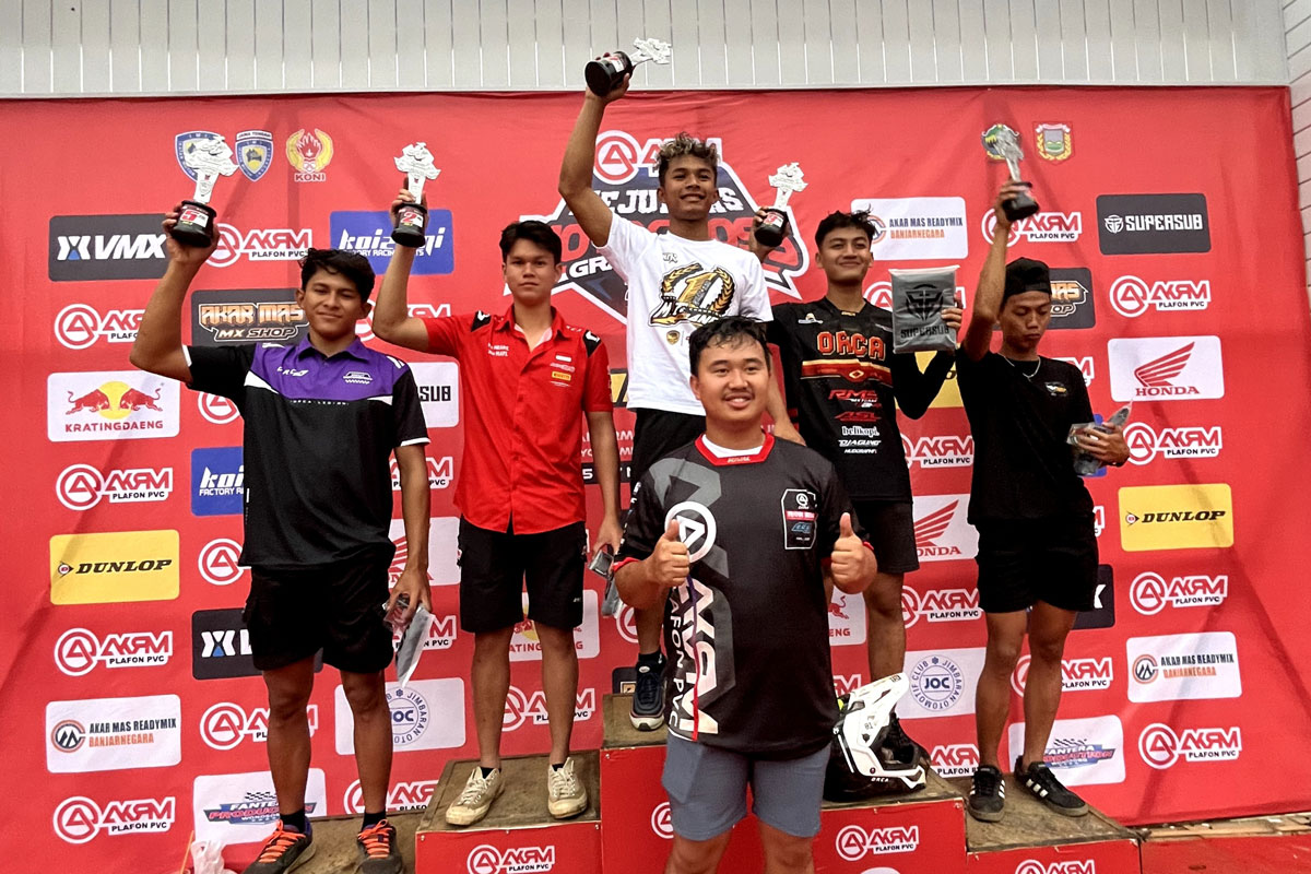Jakarta – Crosser binaan PT Astra Honda Motor (AHM) M. Arsenio Algifari berhasil meraih dua podium pada ajang kompetisi Kejuaraan Nasional (Kejurnas) Motocross Grasstrack 2024 kelas MX2 seri ketiga (15-17/11). Setelah melewati dua seri sebelumnya akibat pemulihan cidera, pebalap asal Jakarta ini menampilkan kemampuan terbaiknya dan meraih podium kedua pada 2 race yang digelar di Sirkuit Akarmas Sumbing Mountain, Wonosobo, Jawa Tengah.