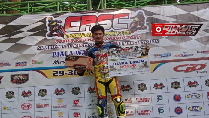 OtomotifZone.Com – Banten. Pada gelaran CRSC Road Race Championship 2022 yang berlangsung di Sirkuit NP Jl. KH. Yasin Beji Krakatau Junction, Cilegon, Banten (30/10). Rio Adi pada roadrace Cilegon raih Juara Umum Matic Open bersama YM Racing.